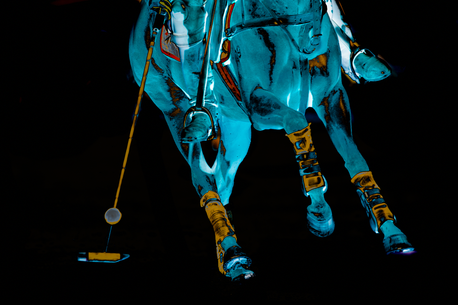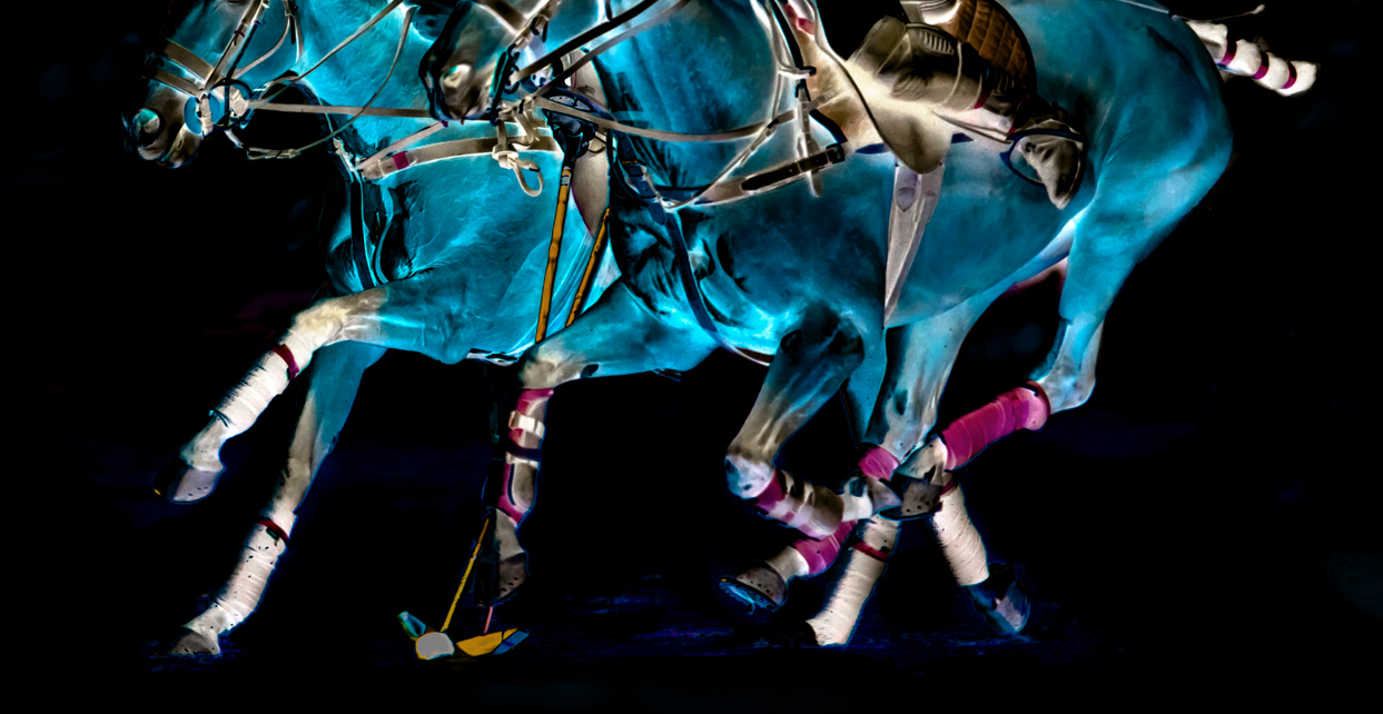 B-Side is a personal artistic vision that explores the dynamic and vibrant world of polo through the lens of modernism. I sought to capture motion and movement in still images. Polo is a vigorous sport, very fast, with high pulsations, often played in the sweltering heat. The B-Side collection, like the commissioned work, portrays the horses, action, strength, and the overall vibrancy of the sport.